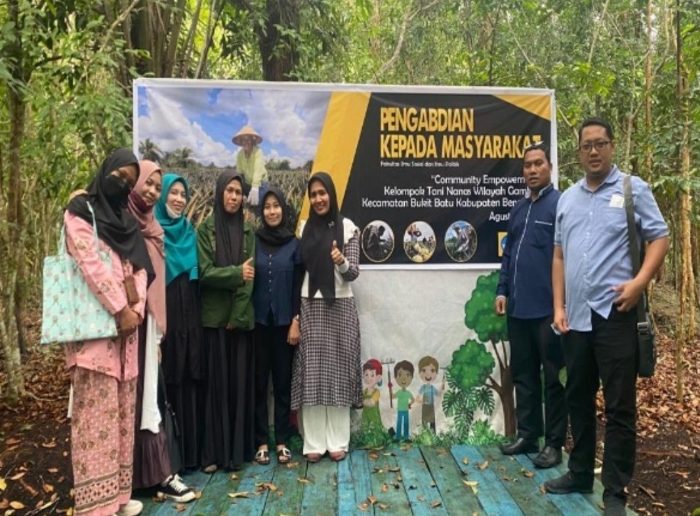 "Mengingat wilayah Bengkalis yang didominasi oleh tanah gambut saat musim kemarau, lahan yang tidak diolah oleh masyarakat dengan baik dapat memicu terjadinya kebakaran sehingga untuk mengurangi permasalahan tersebut lahan kosong masyarakat dijadikan sebagai pertanian nanas," ujar Dr. Dadang Mashur, M.Si salah seorang tim pengabdian mayarakat Dosen UNRI.