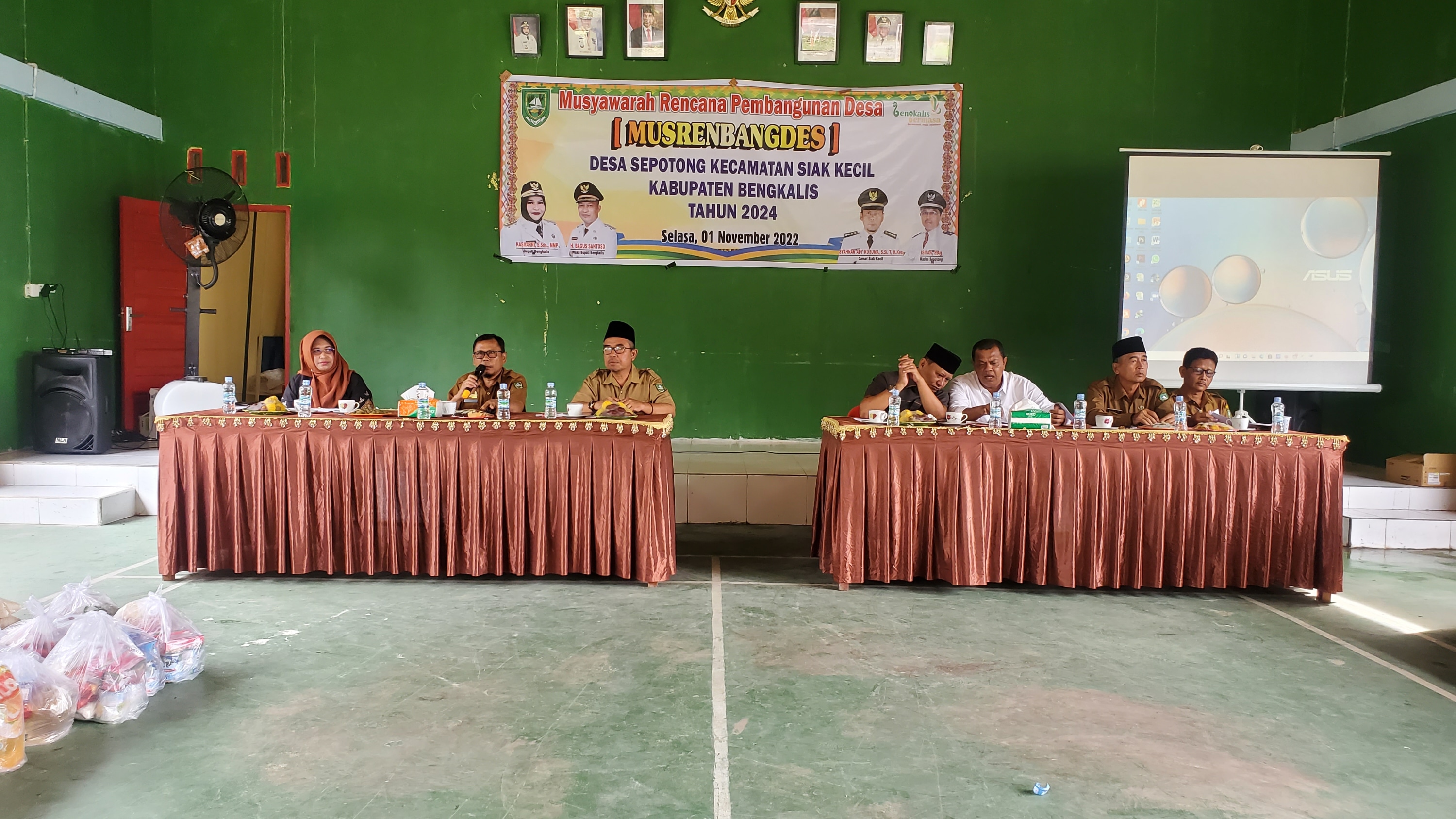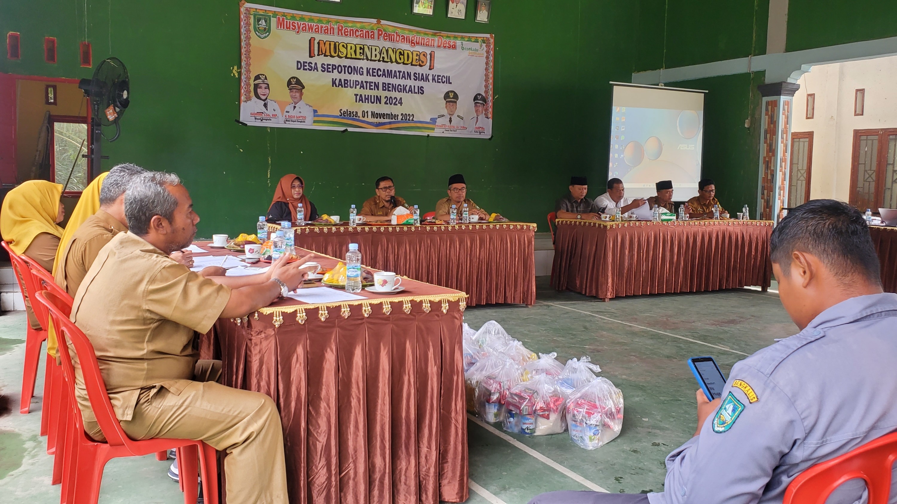 SIAKKECIL - Pemerintah Desa Sepotong gelar Musyawarah Perencanaan Pembangunan Desa (Musrenbangdes) dalam rangka Penyusunan RKP Desa Tahun 2023 dan RKPD Tahun 2024, di aula kantor desa Sepotong Kecamatan Siak Kecil Kabupaten Bengkalis, Selasa (1/1/2022).