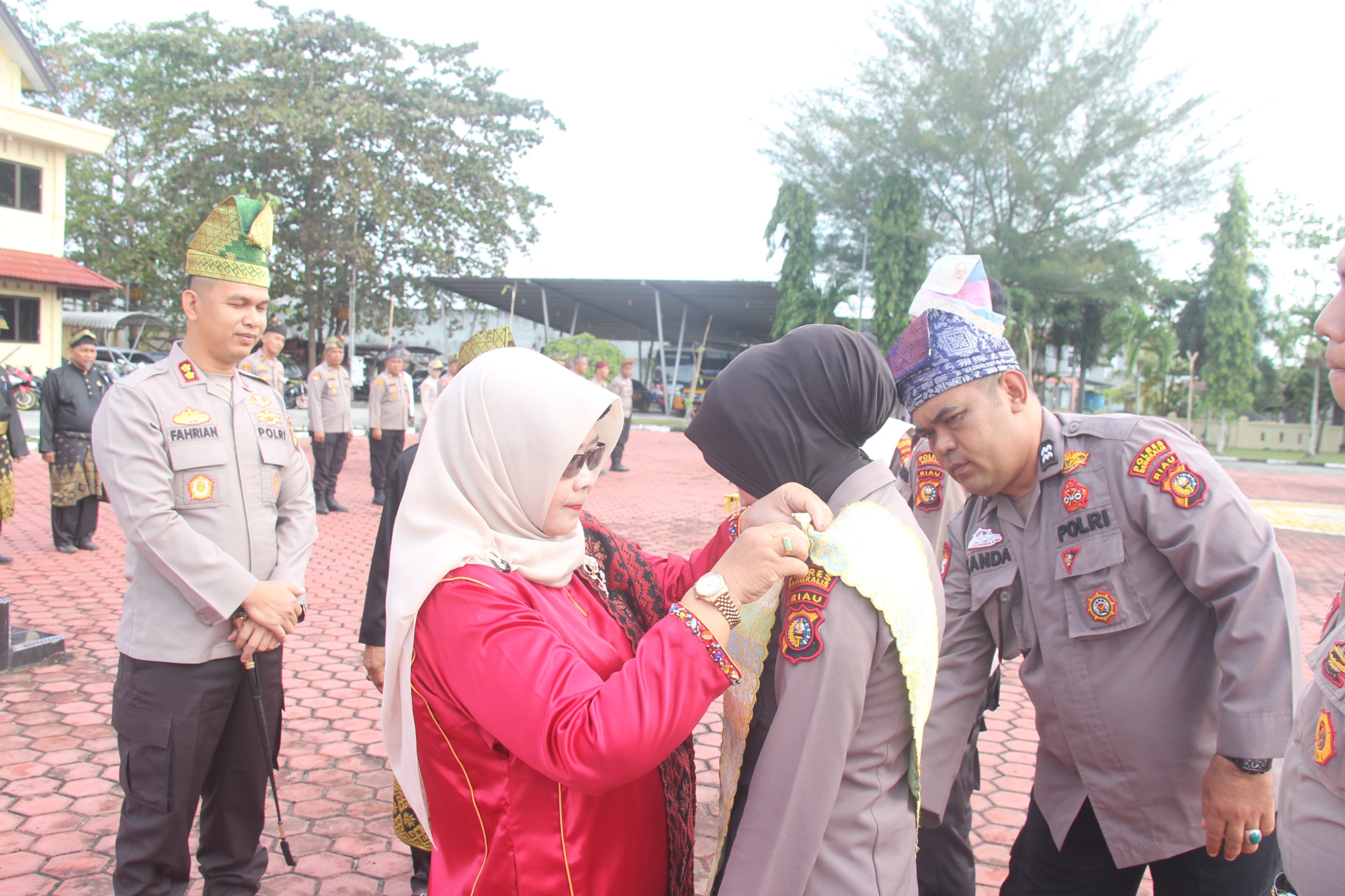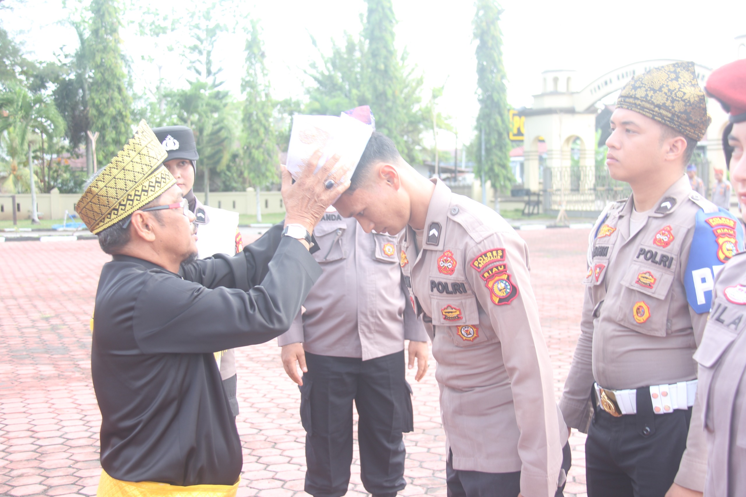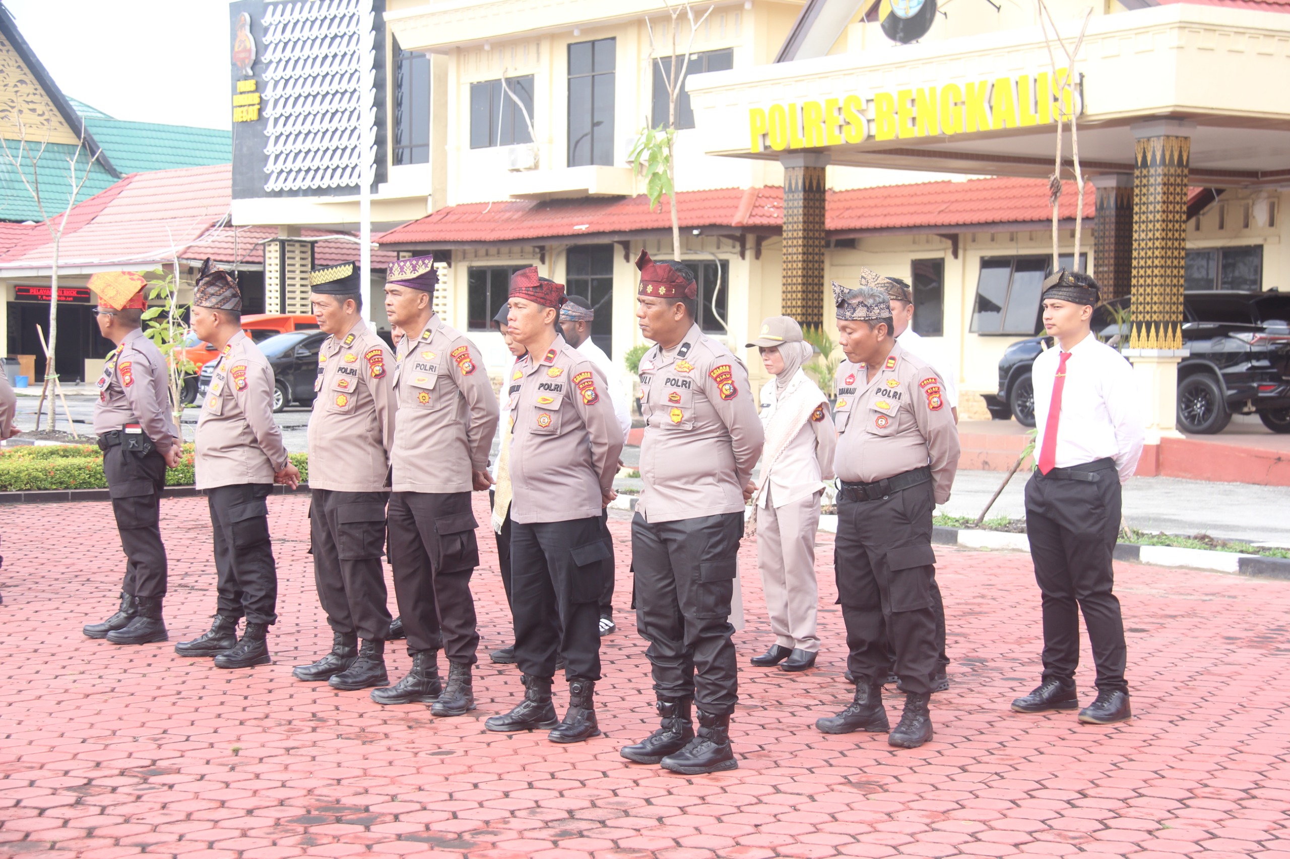 Kapolres Bengkalis, Fahrian Saleh Siregar, S.I.K., M.S.I., melalui Kasi Humas Aipda Juliandi Barsah, S.Pd., menekankan filosofi mendalam di balik penggunaan atribut adat tersebut.