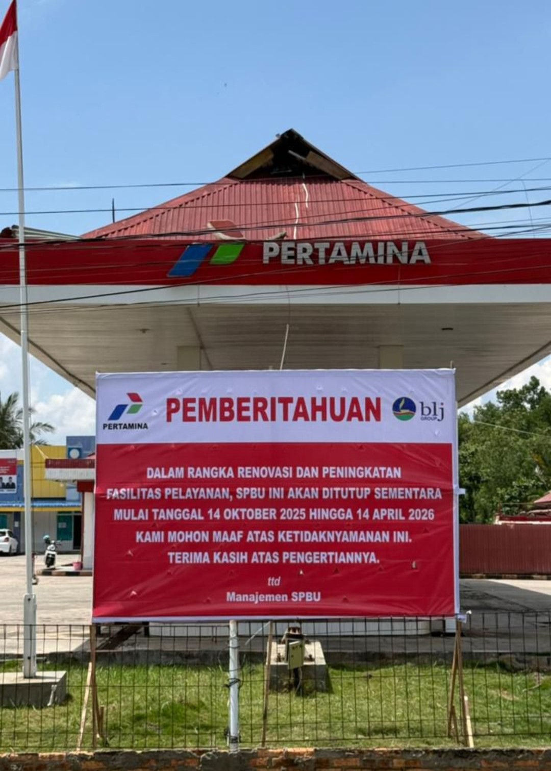 Menurut pemberitahuan resmi yang dipasang di area SPBU, penutupan sementara akan berlangsung mulai 14 Oktober 2025 hingga 14 April 2026. Selama periode tersebut, seluruh aktivitas pengisian bahan bakar akan dihentikan sementara.