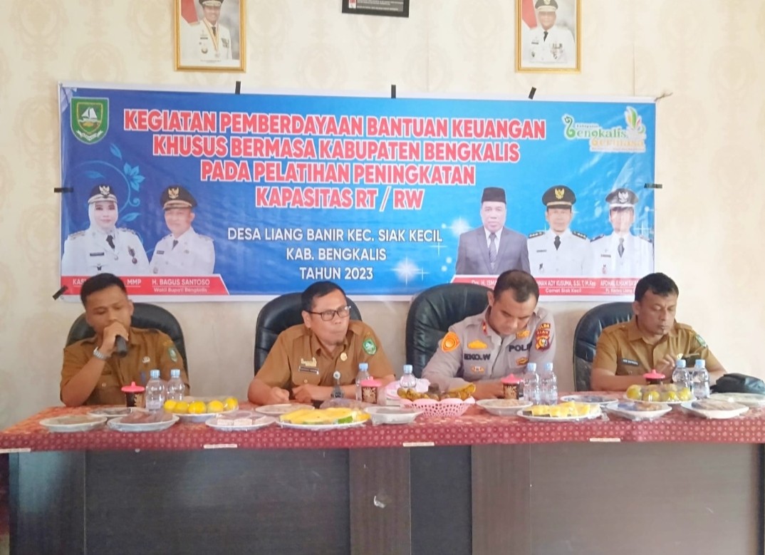 SIAKKECIL - Guna meningkatkan peran dan kinerja para ketua RT/RW, Pemerintah desa Liang Banir Kecamatan Siak Kecil Kabupaten Bengkalis menggelar pelatihan Peningkatan Kapasitas RT/RW yang dilaksanakan diruang aula rapat kantor desa Liang Banir.selasa(27/6/2023)