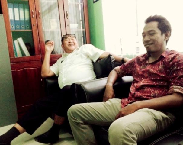 Keterangan Gambar : Sekretaris Disbudparpora Bengkalis Nurmansyah berbincang akrab dengan salah seorang Wartawan Harian di Bengkalis, Rabu (15/3/2017)
