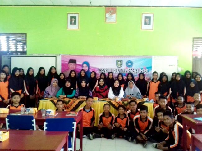 Keterangan Gambar : Ketua TP PKK Kelurahan Sungai Pakning drg Lisa Novianti dan Narasumber dr Dewi foto bersama dengan siswa siswi peserta sosialisasi bahaya HIV AIDS di Sungai Pakning