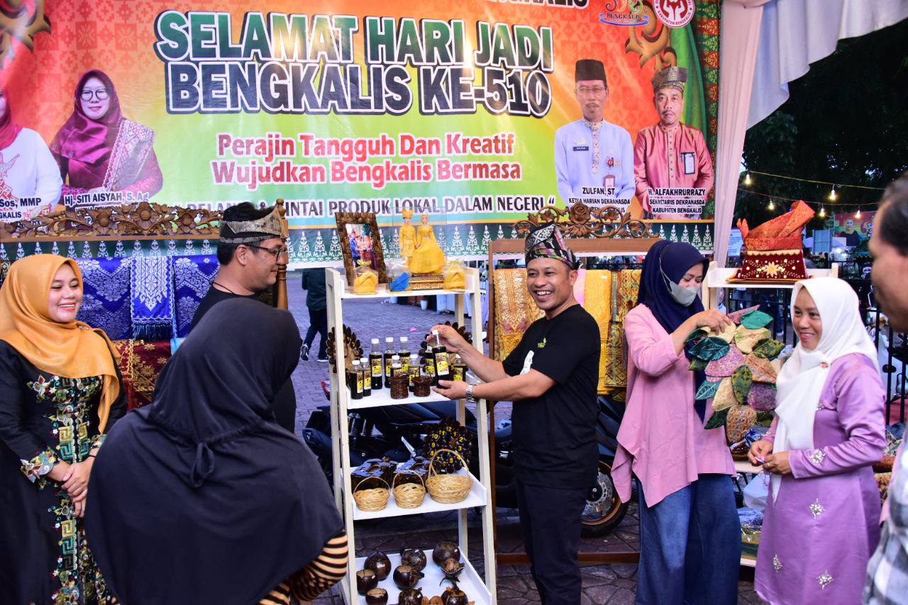 "Kegiatan ini sangat positif, ada perpaduan konsep ekonomi kreatif, edukatif dan budaya. Disini tempat semua masyarakat berkreasi tanpa sekat beda kelompok dan golongan. Hanya satu tujuan kompak bersatu untuk kemajuan negeri Bengkalis yang kita cintai,” tegas Bagus Santoso yang disambut tepuk tangan gemuruh pengunjung.