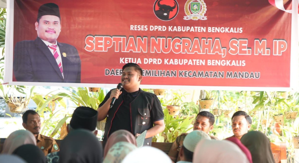 Keterangan Gambar : Ketua DPRD Kabupaten Bengkalis, Septian Nugraha, S.E., M.IP, Saat Melaksanakan Kegiatan Reses Masa Sidang III Tahun 2025 di Wilayah Kecamatan Mandau