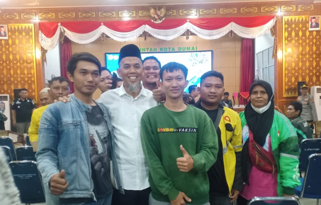 Keterangan Gambar : Wali Kota Dumai foto bersama dengan pengemudi online dan jajarannya