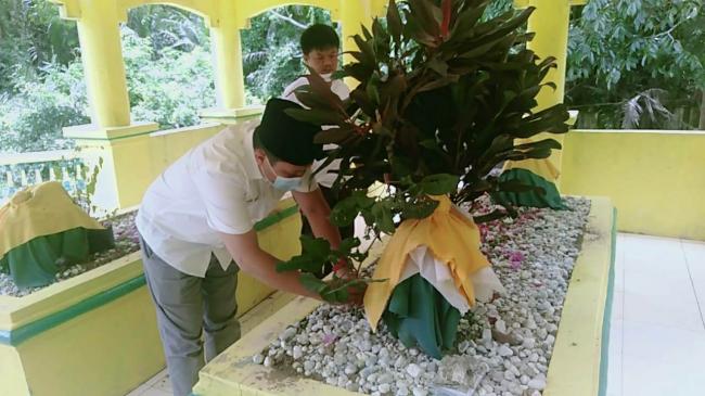 Keterangan Gambar : Abi Bahrun dan Herman saat berziarah ke makam Datuk Laksamana Raja Dilaut, Sabtu (12/9/2020)