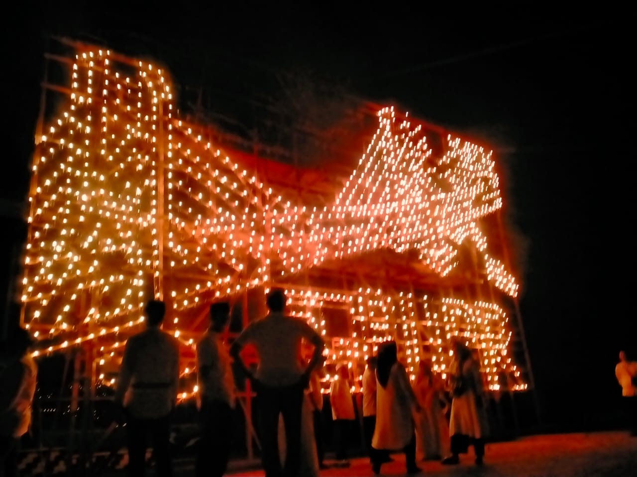"Alhamdulillah pada malam ini tepat malam 27 atau malam 7 likur miniatur colok gambar jembatan dapat terpasang dengan menggunakan 3.000 buah colok dan terlihat cukup baik, dan untuk pendanaan bersumber secara swadaya melalui kawan kawan di internal dinas, disini juga kita melibatkan pekerja dari luar yang mengerti dan bisa mengerjakan perakitan dan pemasangan lampu colok yakni dari pemuda atau masyarakat kita juga" Tambahnya lagi.