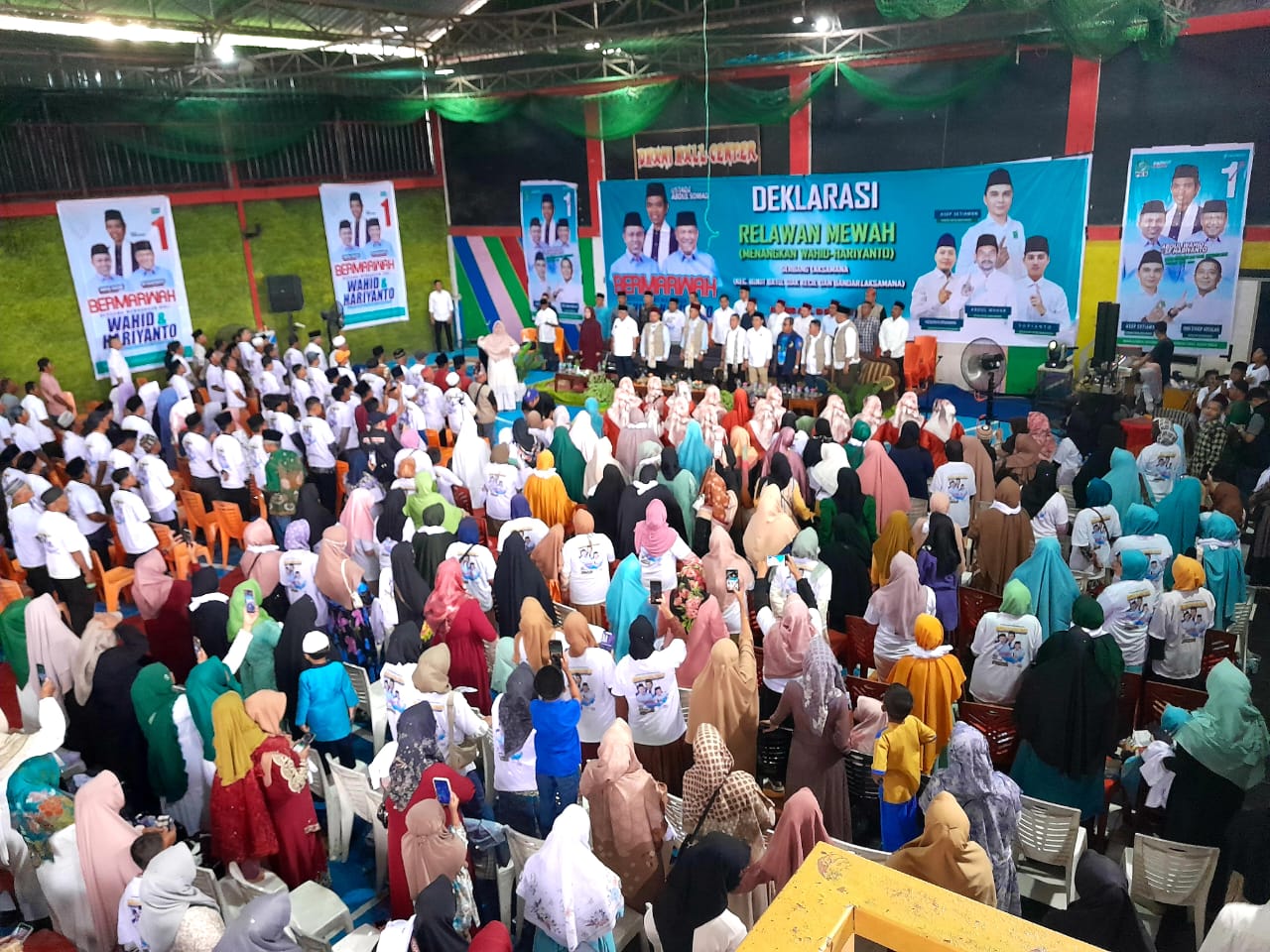 BENGKALIS - Ribuan warga yang berasal dari Kecamatan Bukit Batu, Kecamatan Siak Kecil dan Kecamatan Bandar Laksamana Kabupaten Bengkalis, tumpah ruah memenuhi Gedung Dhani Hall Center Jalan Kelapa Desa Pakning Asal dalam acara Deklarasi Relawan MEWAH (Menangkan Wahid - Hariyanto). Jumat (18/10/2024)