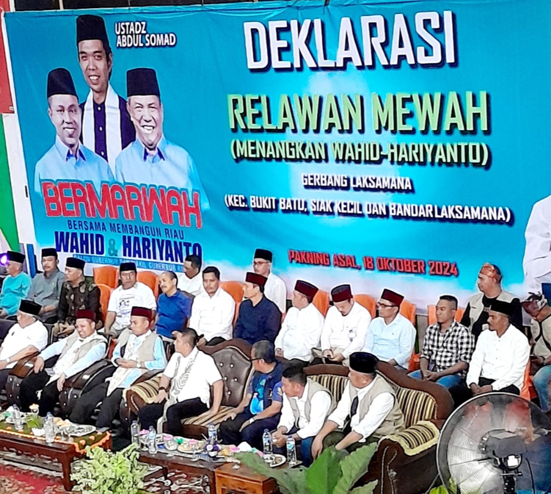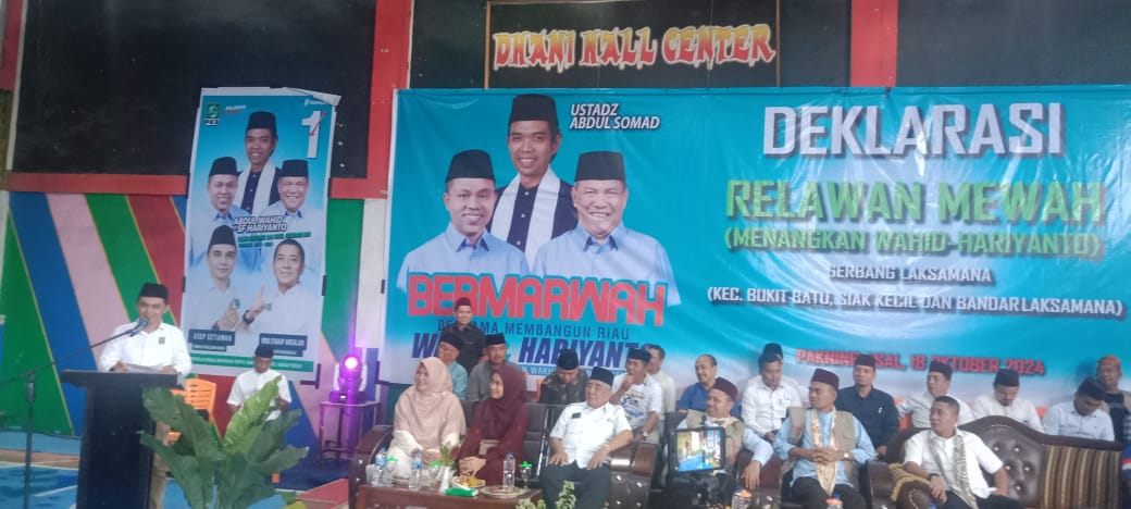 Ribuan warga dan Relawan MEWAH (Menangkan Wahid - Hariyanto) yang di ketuai oleh Abdul Wahab atas binaan Anggota DPRD Bengkalis dari Partai Kebangkitan Bangsa (PKB) Asep Setiawan, sore itu tampak antusias mengikuti deklarasi dan kampanye yang langsung dihadiri oleh Tuan Guru Ustadz Abdul Somad (UAS) dan Calon Gubernur Riau Nomor Urut 1 Abdul Wahid.