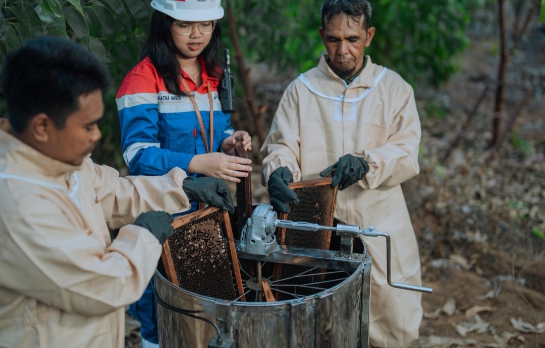 “Bersama para perwira Pertamina Sungai Pakning, kami berupaya menghadirkan inovasi yang benar-benar bermanfaat bagi masyarakat. Sekarang kelompok sudah punya ekstraktor madu sendiri. Kalau dulu setiap panen mereka harus memotong sarang, kini cukup menggunakan spinner untuk memisahkan madu tanpa merusaknya. Panen jadi lebih cepat, lebih aman, dan tentu lebih ramah lingkungan. Kehadiran inovasi ini sangat membantu kelompok,” ujar Manager Production PT KPI RU II Sungai Pakning, Ririanti Safrida.