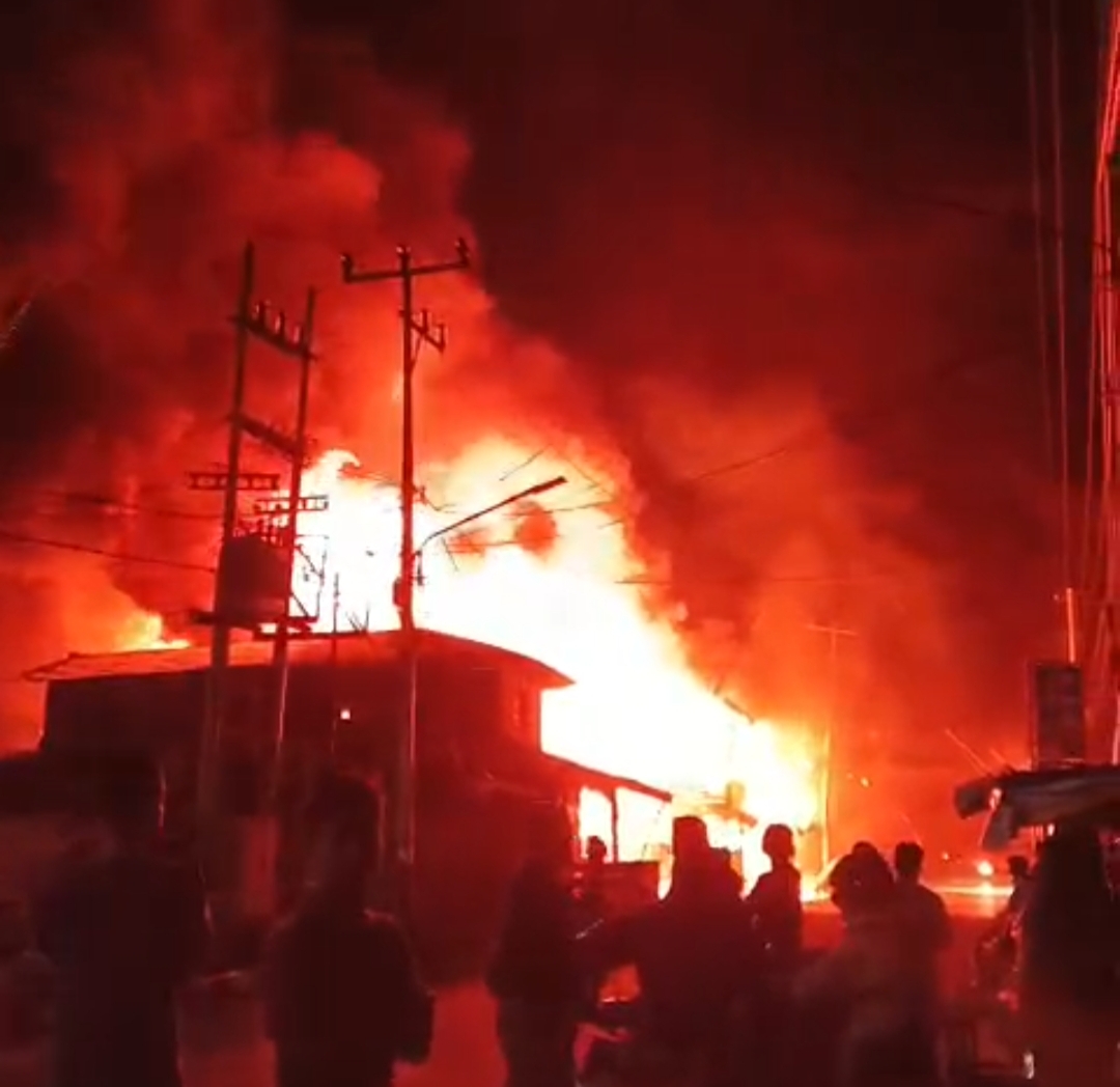 SUNGAI PAKNING – Kehangatan sahur di Jalan Jenderal, Kelurahan Sungai Pakning Kecamatan Bukit Batu Kabupaten Bengkalis, berubah menjadi amukan si jago merah, pada Kamis, (19/03/2026) dini hari tadi. Api yang diduga berasal dari korsleting listrik melalap puluhan bangunan, menyisakan puing hitam dan tangis di penghujung Ramadan.