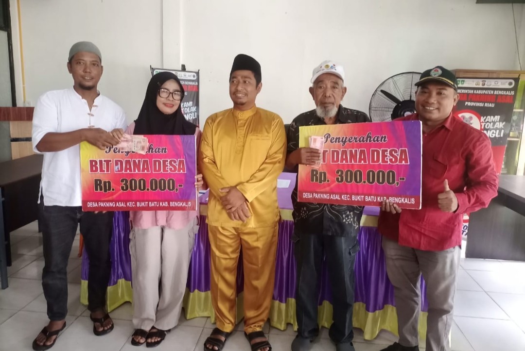 BUKIT BATU – Pemerintah Desa Pakning Asal, Kecamatan Bukit Batu, Kabupaten Bengkalis menyalurkan Bantuan Langsung Tunai (BLT) yang bersumber dari Dana Desa (DD) tahap II tahun 2025 kepada warga kurang mampu, Senin (Agustus 2025).