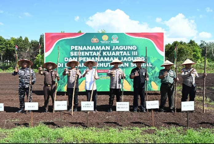 BENGKALIS - Polres Bengkalis bersama Pemerintah Kabupaten Bengkalis melaksanakan Penanaman Jagung Serentak Kuartal III di Kampung Tangguh Polres Bengkalis. Rabu, 9 Juli 2025.