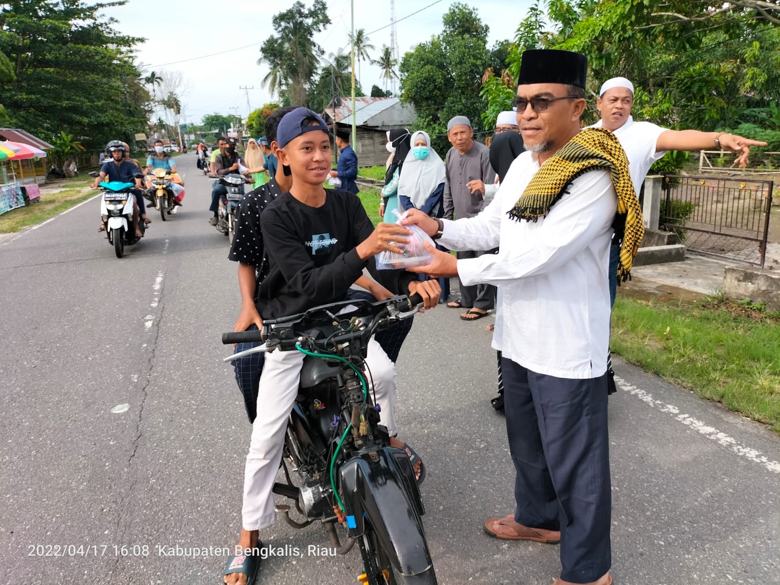 "Pembagian takjil ini kita bagikan kepada warga yang melintasi jalan tersebut. Dan ada sebanyak 450 paket takjil berupa kue, dan 90 kotak nasi kita berikan di masjid masjid terdekat."kata Edi Yusri.