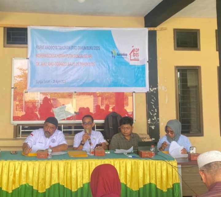BUKITBATU – Koperasi Desa Merah Putih (KDMP) Desa Sungai Selari, Kecamatan Bukit Batu, sukses menggelar Rapat Anggota Tahunan (RAT) Tahun Buku 2025 di Aula Kantor Desa Sungai Selari. Kegiatan ini berlangsung lancar dan penuh partisipasi dari anggota serta tokoh masyarakat setempat, Rabu (29/04/2026).